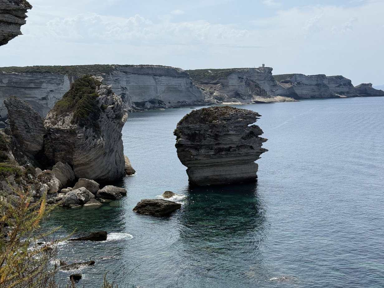 Heute stand ein Tagesausflug am Programm zum 100km entfernten Bonifacio. Aber lasst uns wie immer am Beginn des Tages beginnen….der war echt zeitig 🫣 – um 7 Uhr klingelte der Wecker, weil das Tantchen Auto uns um 8 abholte (wir waren 4 Minuten zu spät, verrate ich schon mal 🤫). Aber dann ging es fast pünktlich die Straße Richtung Süden. Sissy und Franz waren beinahe überall schon und erzählten Geschichten zu den verschiedenen Orten, somit lernten wir nicht nur die Ostküste kennen, sondern waren schwupps (knapp 2h später) in Bonifacio. Zwischenzeitlich dachten wir, der Ausflug fällt wegen sturzflutartigen Regenfällen ins Wasser, aber der Wettergott meinte es gut, fast zu gut mit uns. Am frühen Nachmittag hatte es nämlich an die 30 Grad, der Vormittag war genau richtig für Stadtbesichtigung – bewölkt und 24 Grad. 10 vor 10 fanden wir einen Parkplatz und bestiegen die Altstadt. Die liegt nämlich auf einem Felsen und gilt als uneinnehmbar. Sämtliche Feinde konnten sie nicht bezwingen, nur die vielen Tourist:innen 😂.