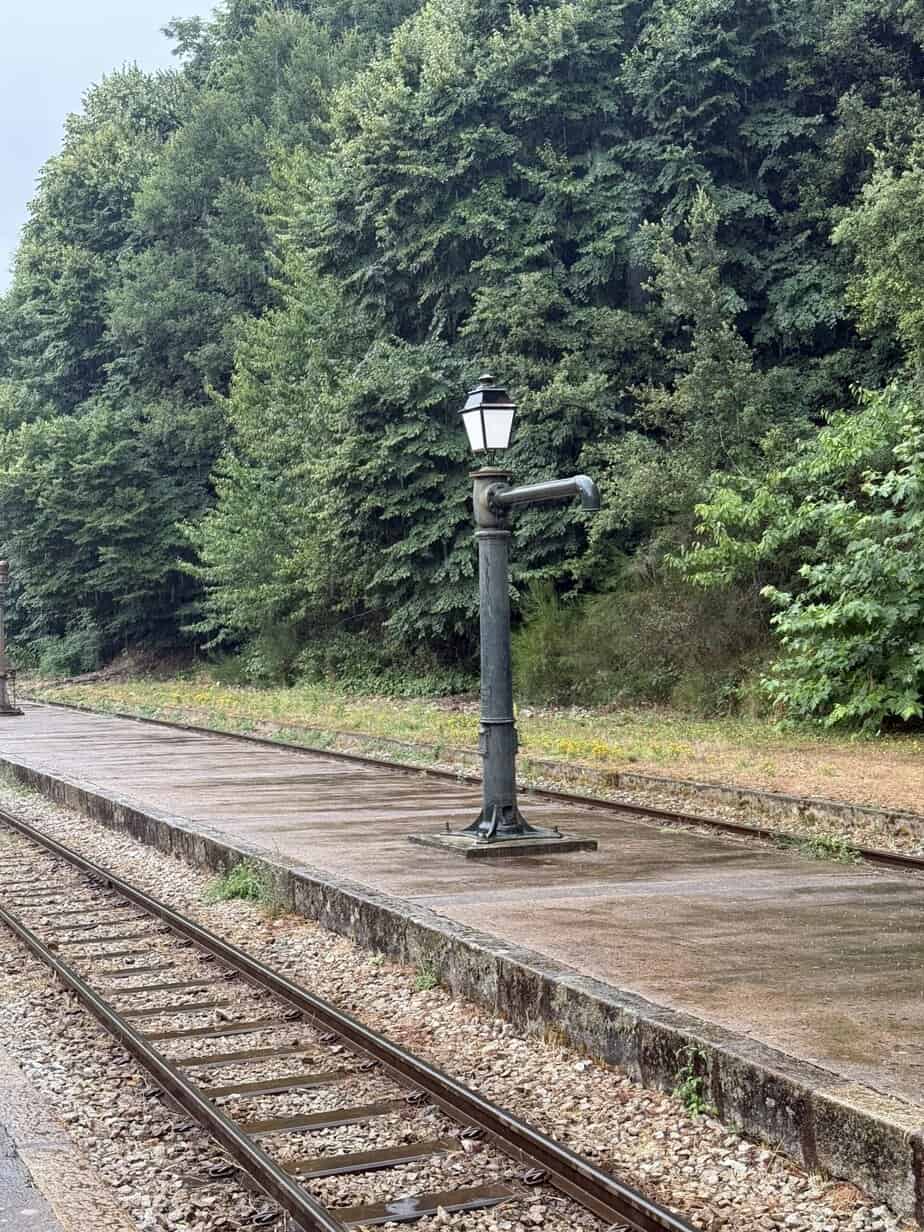 Bevor wir aus den Bergen wieder raus sind, sind wir noch zu einer alten Bahnhofsstation gekommen. Die hat wirklich cool ausgesehen, weil überall noch die Wassereinfüllstützen für die Dampfmaschinen erkennbar waren. Nachdem es aber kalt war und geregnet hat, waren wir nicht lang dort. Nur zwei Jugendliche saßen bei der Kantine. Sonst war es verlassen – kein Zug, keine Dampfmaschine, gar nichts.